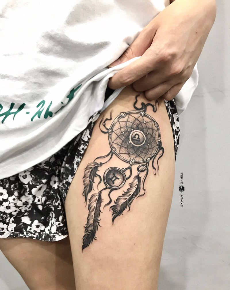 捕梦网纹身图片_腿部纹身图案