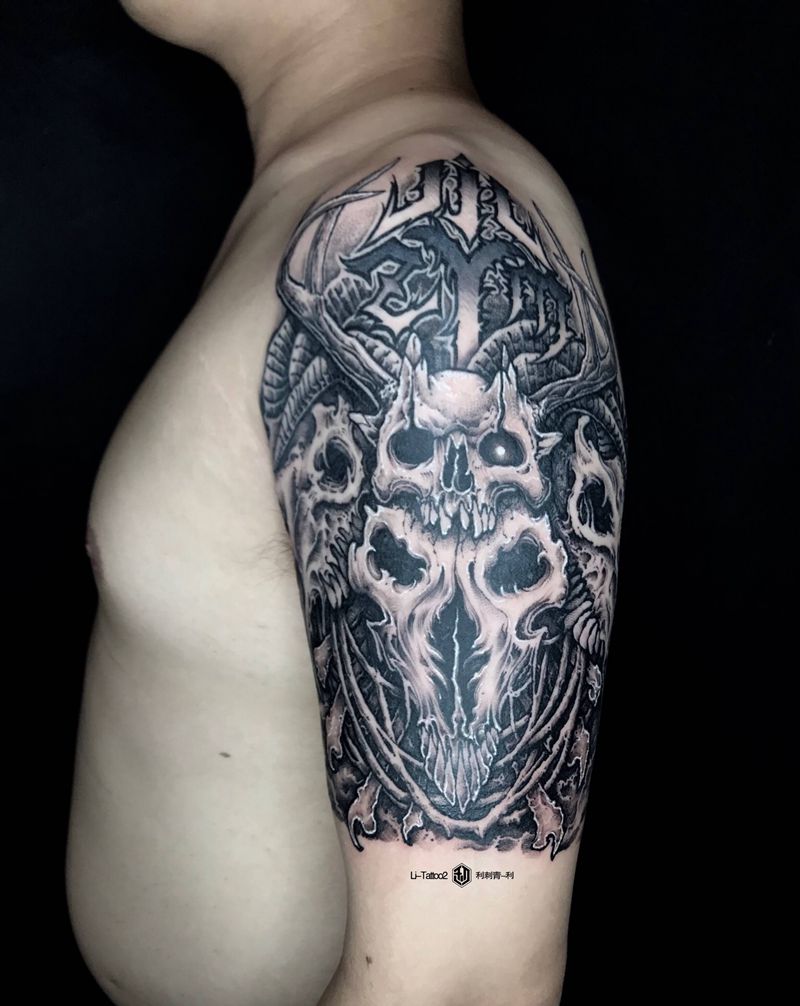 当前位置: 首页 >广东省茂名市纹身店-利刺青纹身图案>羊骨头纹身图片_手臂New School纹身图案