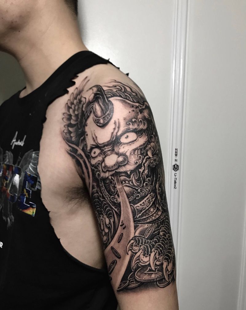 貔貅纹身图片_手臂肩部新传统纹身图案