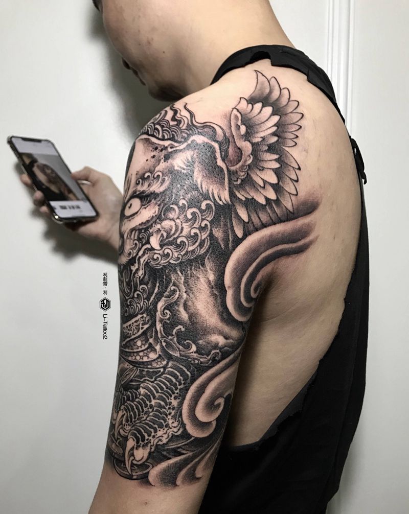 貔貅纹身图片_手臂肩部新传统纹身图案