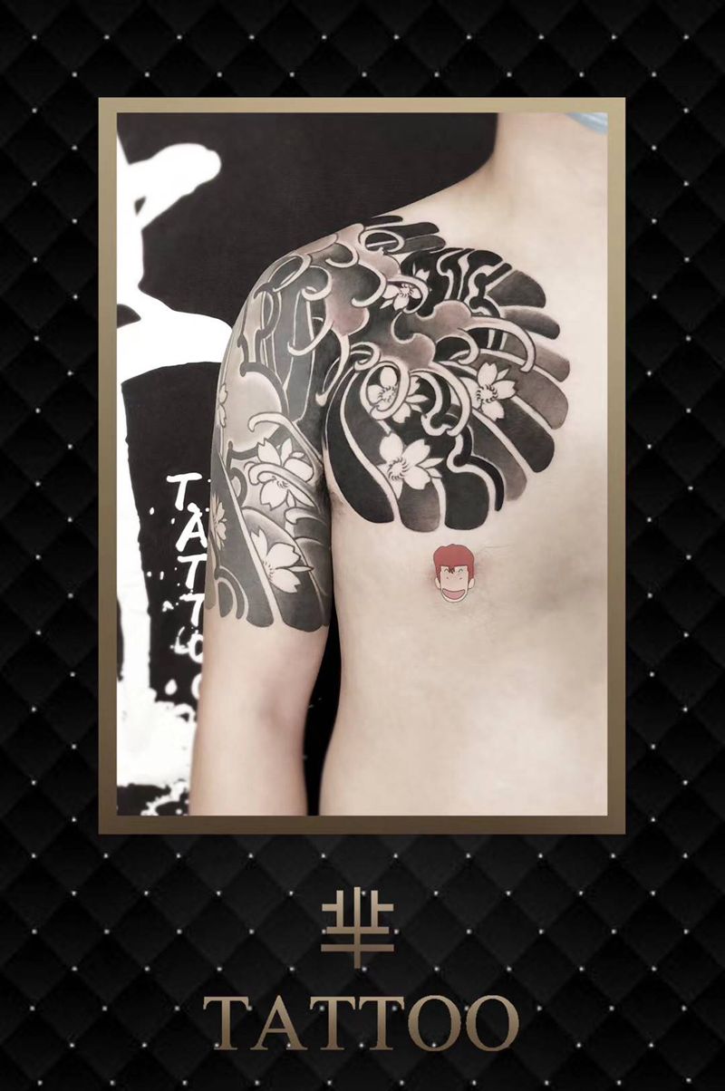 当前位置: 首页 >广东省惠州市纹身店-芈刺青纹身图案>传统半甲纹身图片_手臂肩部纹身图案