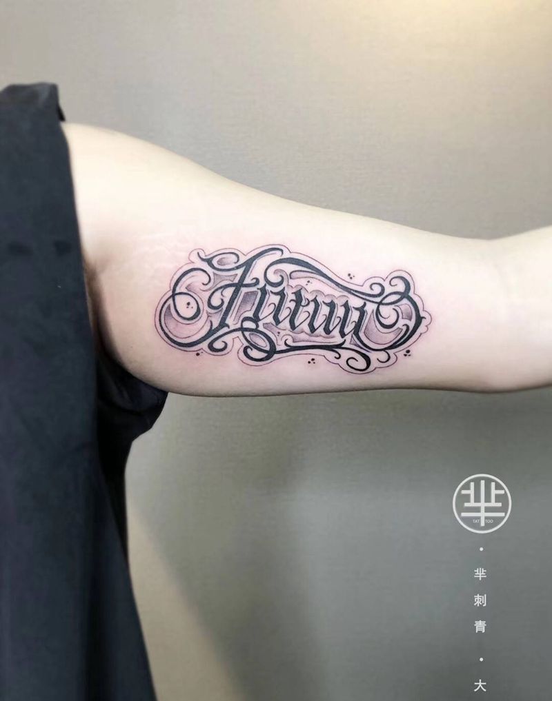 当前位置: 首页 >广东省惠州市纹身店-芈刺青纹身图案>花体纹身图片_手臂花体字纹身图案