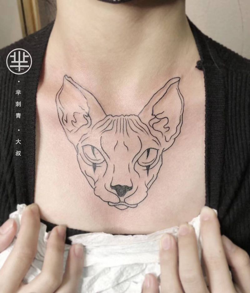 无毛猫纹身图片_胸部纹身图案