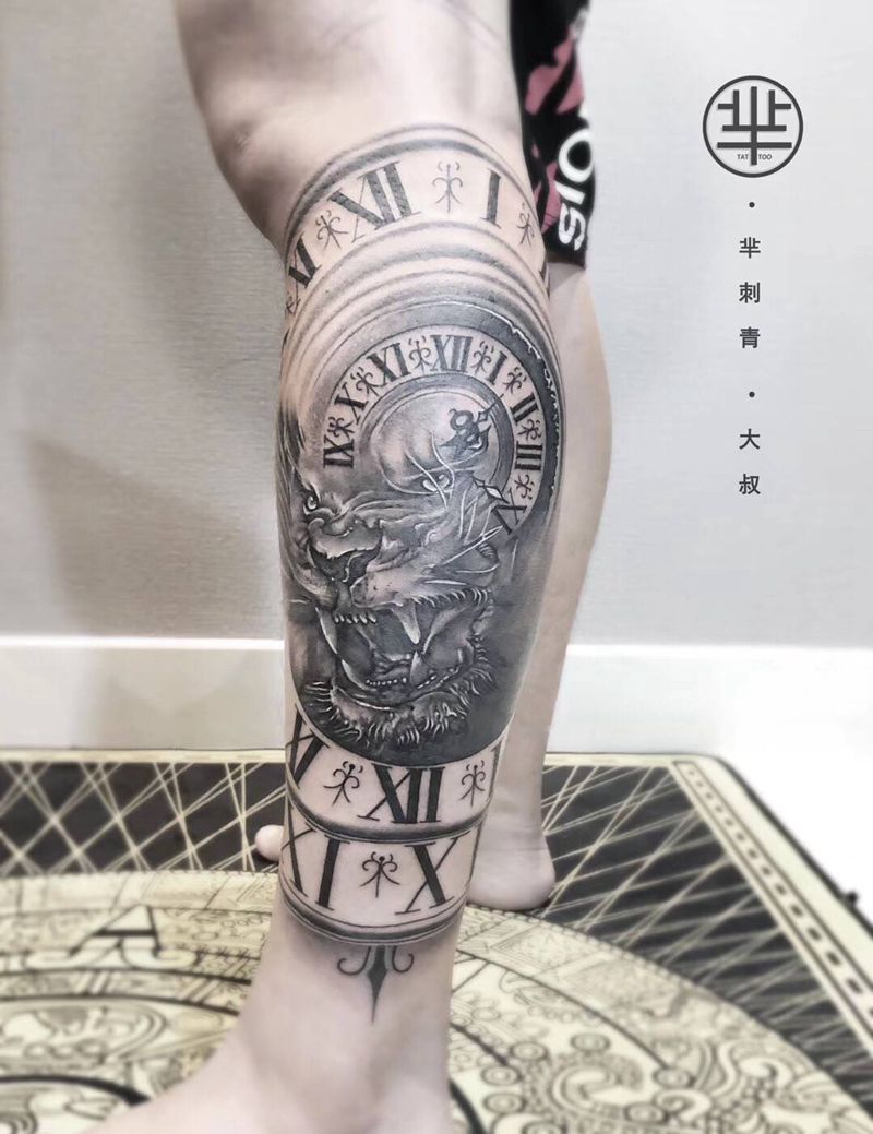 • T网红王老大花腿龙纹身图片_腿部新传统纹身图案