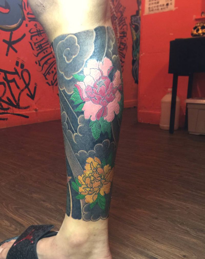 • T网红王老大花腿龙纹身图片_腿部新传统纹身图案