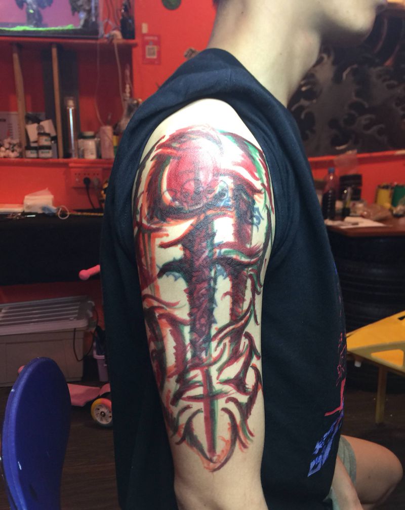 • 纹身吧推荐的披肩图腾半胛纹身图案作品展示