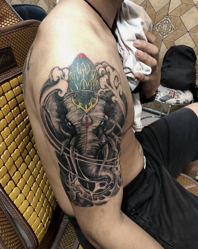 当前位置: 首页 >广东省肇庆市纹身店-九青龍纹身纹身图案>象神纹身图片_成品手臂传统宗教动物纹身图案