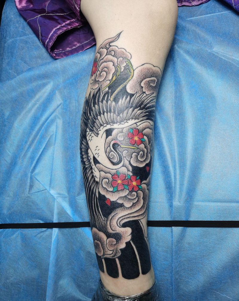 当前位置: 首页 >广东省惠州市纹身店-惠州刺匠纹身纹身图案>仙鹤纹身图片_腿部老传统纹身图案