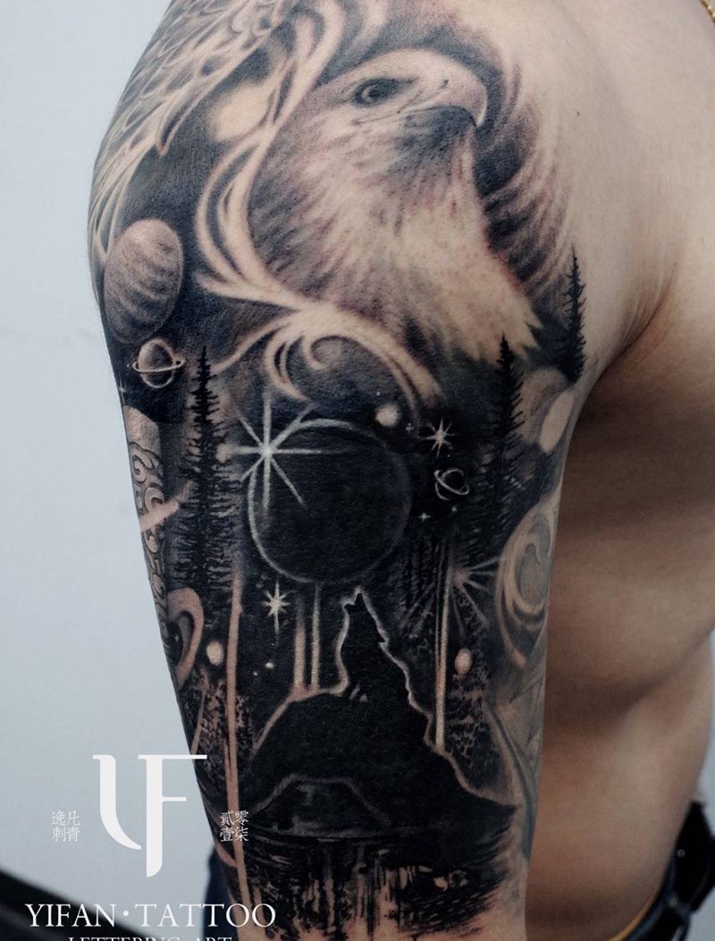 • 纹身吧推荐的披肩图腾半胛纹身图案作品展示