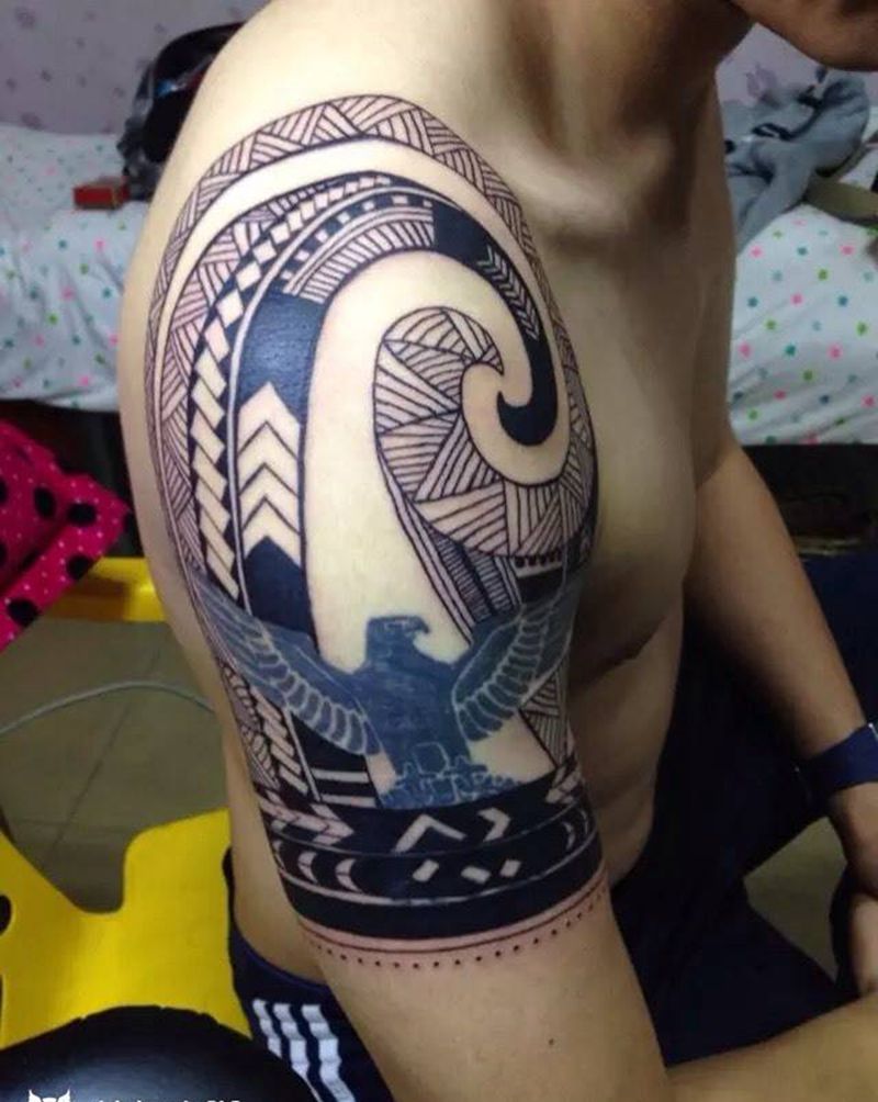 • 纹身吧推荐的披肩图腾半胛纹身图案作品展示