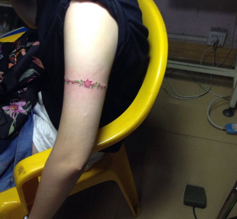 当前位置: 首页 >广东省惠州市纹身店-这个刺青纹身图案>小清新鲜花臂环纹身图片