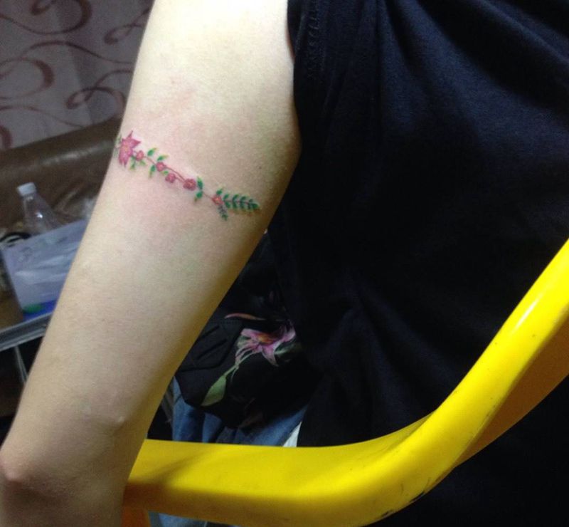 当前位置: 首页 >广东省惠州市纹身店-这个刺青纹身图案>小清新鲜花臂环纹身图片