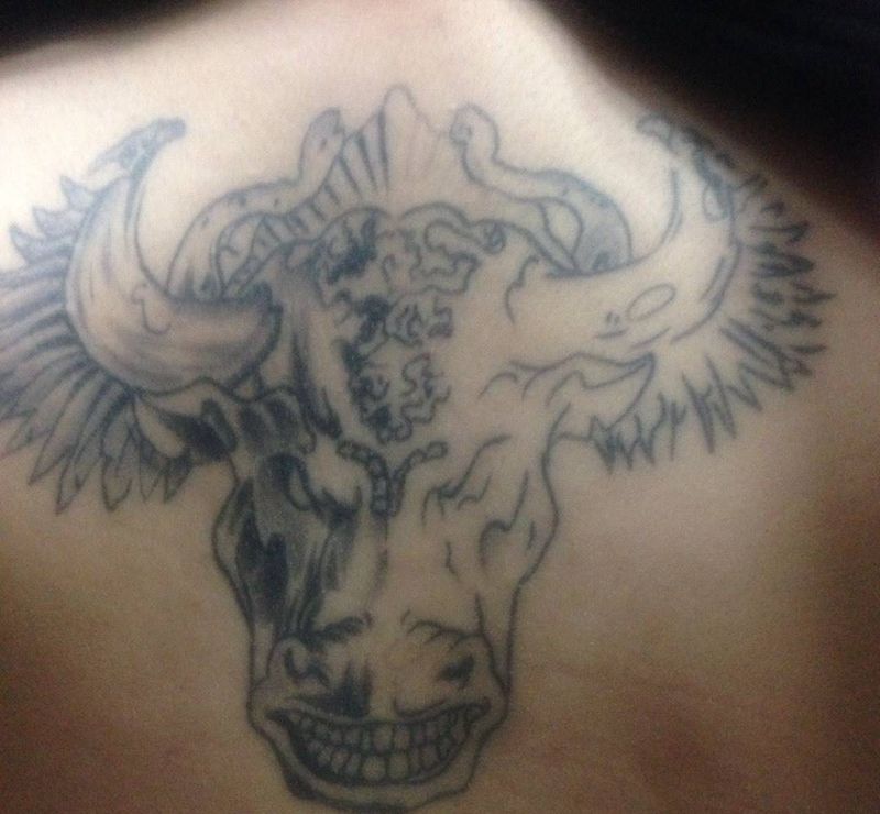 当前位置: 首页 >广东省惠州市纹身店-这个刺青纹身图案>帅帅的牛纹身图片