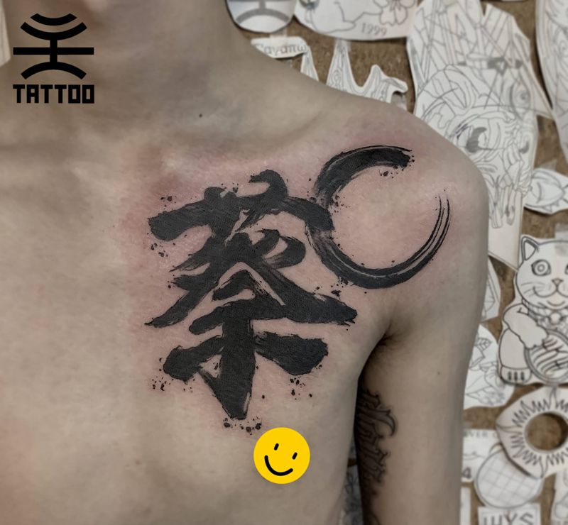 当前位置: 首页 >广东省惠州市纹身店-貳拾捌紋身工作室纹身图案>毛笔字覆盖纹身图片_胸部水墨纹身图案