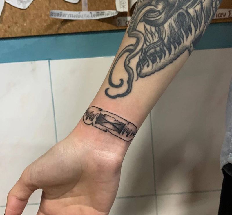 创口贴纹身图片_手部纹身图案