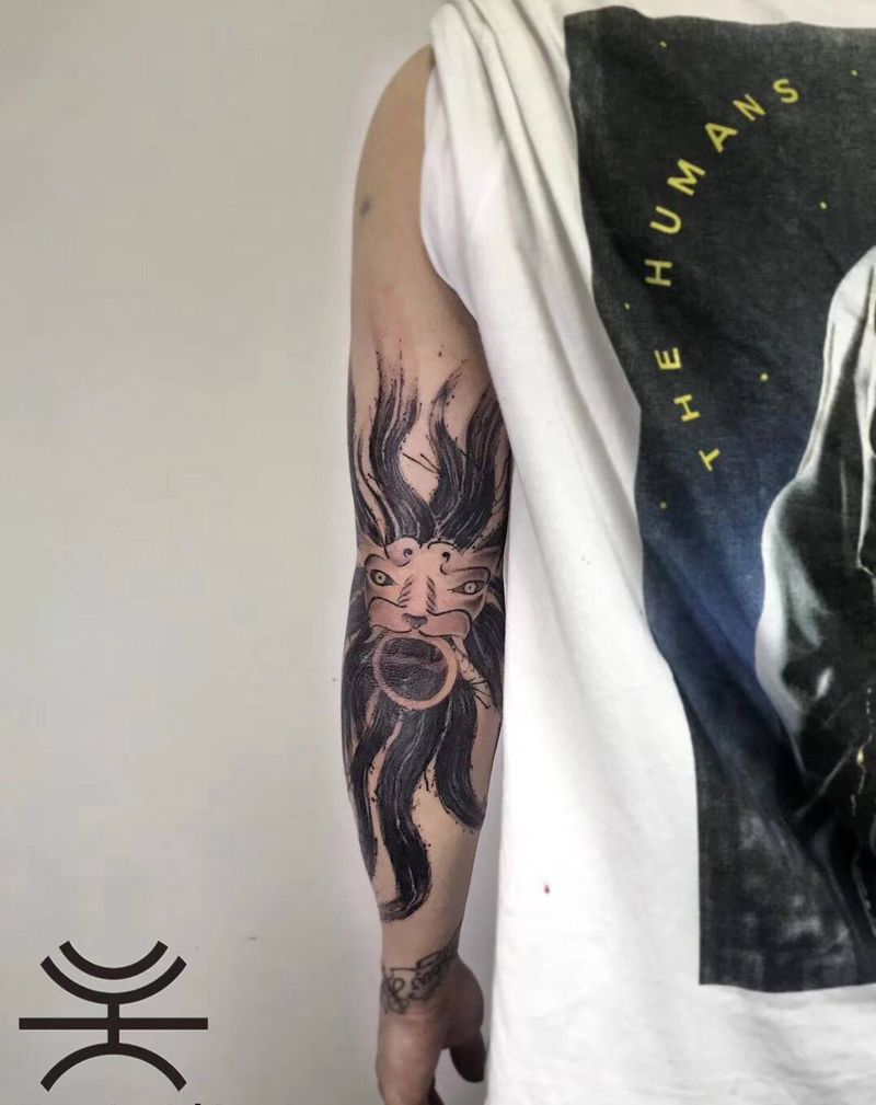 狮子兽首纹身图片