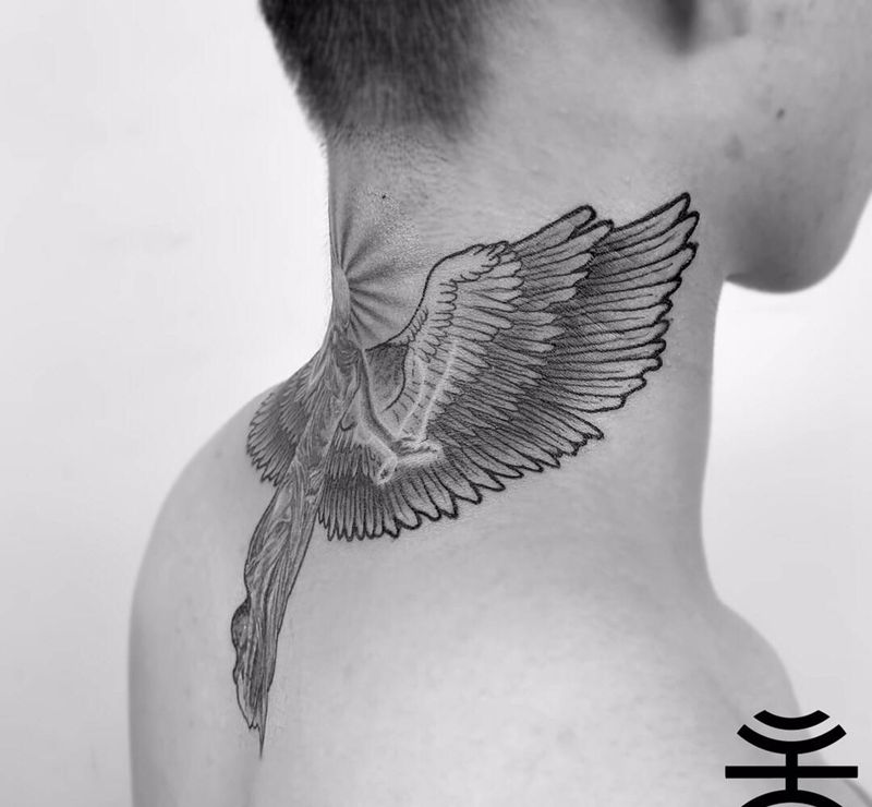 勝利女神纹身图片_颈部欧美写实雕塑纹身图案