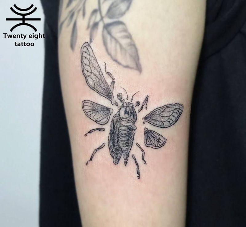 当前位置: 首页 >广东省惠州市纹身店-貳拾捌紋身工作室纹身图案>知了纹身图片