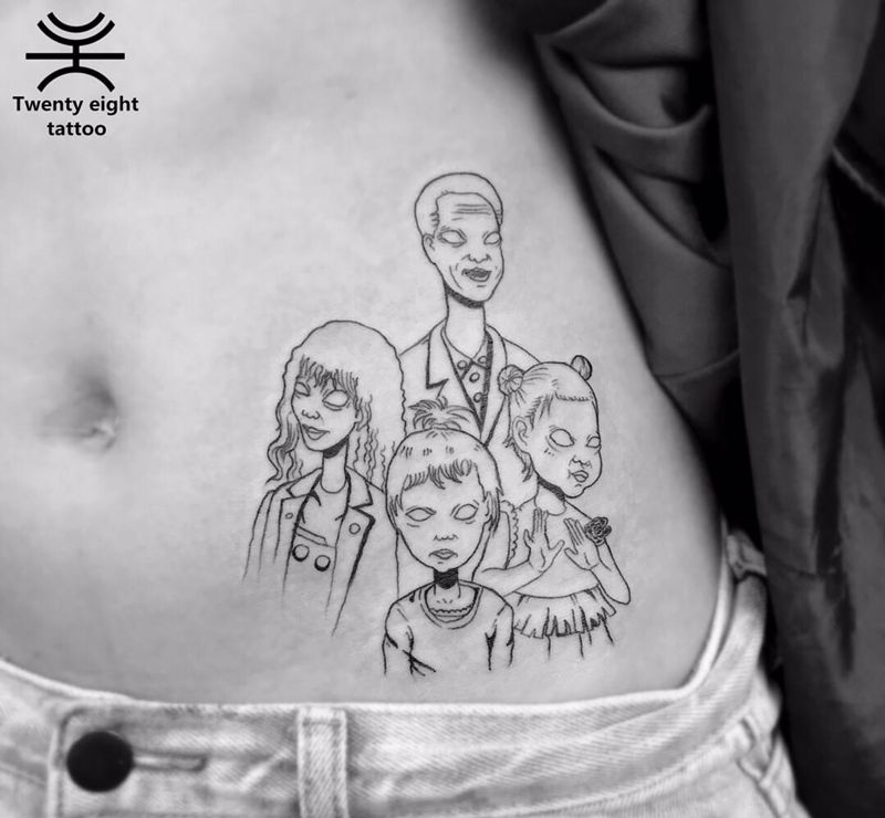 当前位置: 首页 >广东省惠州市纹身店-貳拾捌紋身工作室纹身图案>一家纹身图片_腹部纹身图案