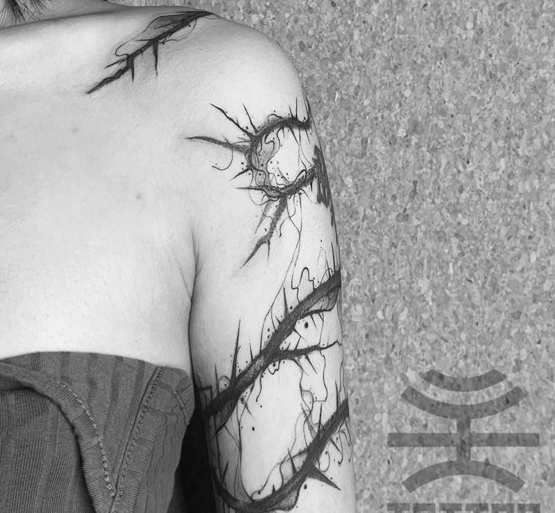 当前位置: 首页 >广东省惠州市纹身店-貳拾捌紋身工作室纹身图案>乱序荆棘纹身图片_手臂水墨荆棘纹身图案