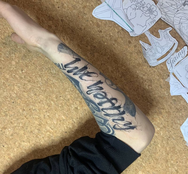当前位置: 首页 >广东省惠州市纹身店-貳拾捌紋身工作室纹身图案>Live worthy纹身图片_手部花体字纹身图案