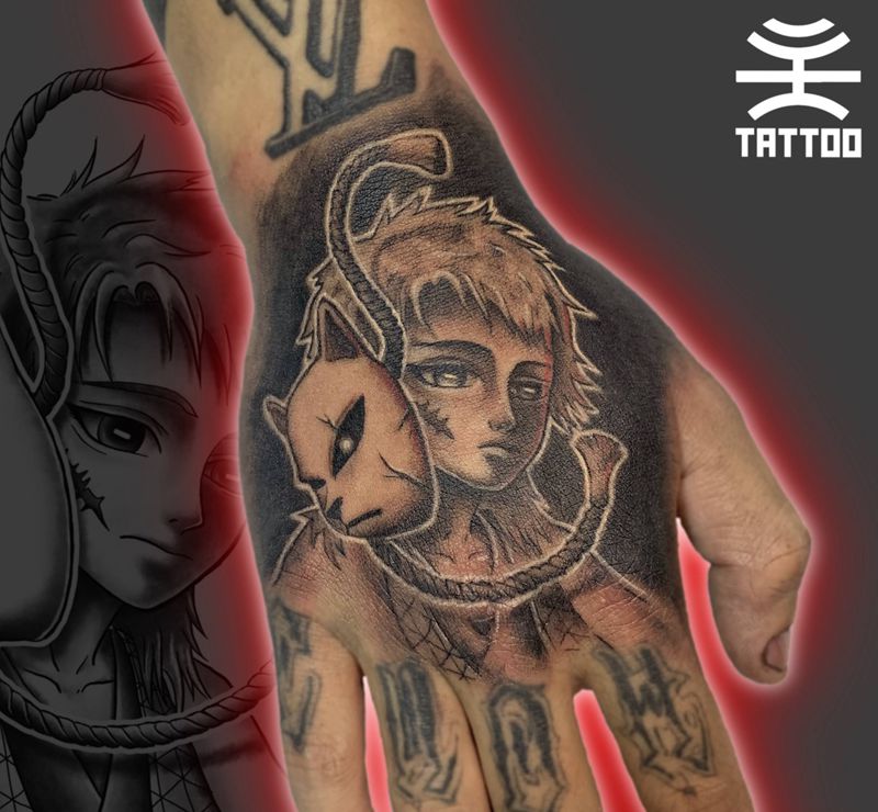 当前位置: 首页 >广东省惠州市纹身店-貳拾捌紋身工作室纹身图案>鬼滅之刃锖兔纹身图片_手部纹身图案