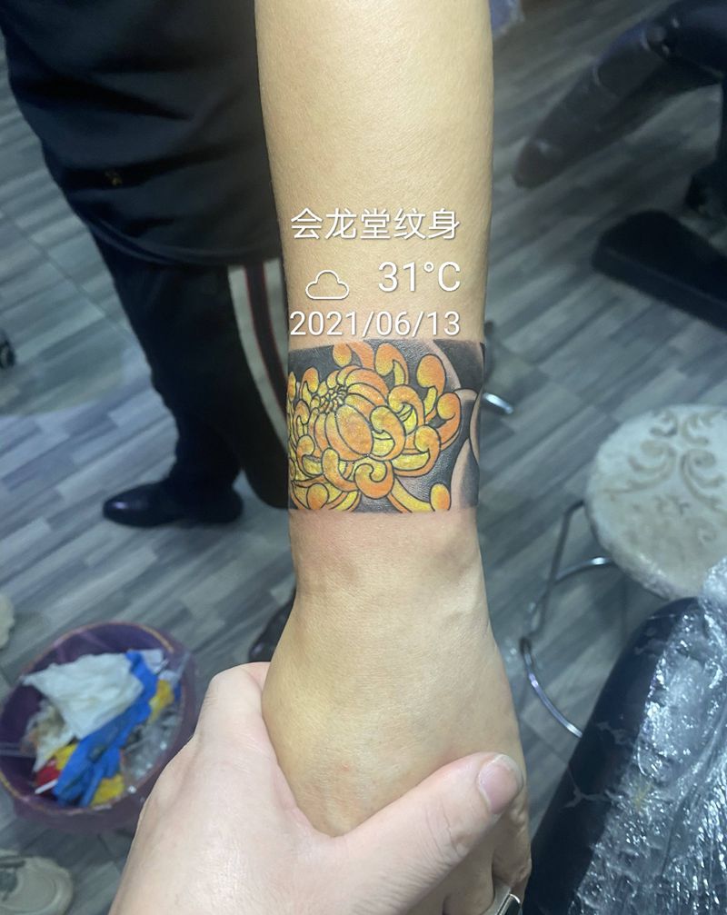 当前位置: 首页 >广东省惠州市纹身店-会龙堂纹艺纹身图案>菊花手环纹身图片_手臂老传统纹身图案