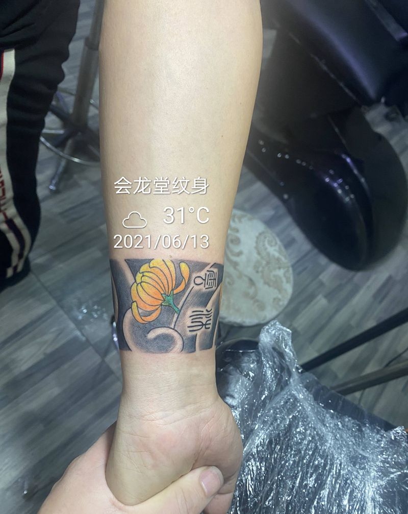 当前位置: 首页 >广东省惠州市纹身店-会龙堂纹艺纹身图案>菊花手环纹身图片_手臂老传统纹身图案