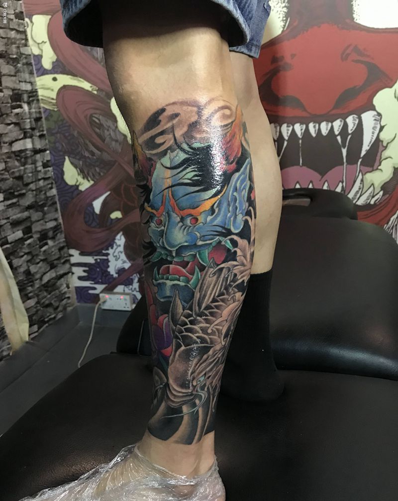 当前位置: 首页 >广东省惠州市纹身店-会龙堂纹艺纹身图案>包小腿纹身作品纹身图片_腿部新传统纹身图案