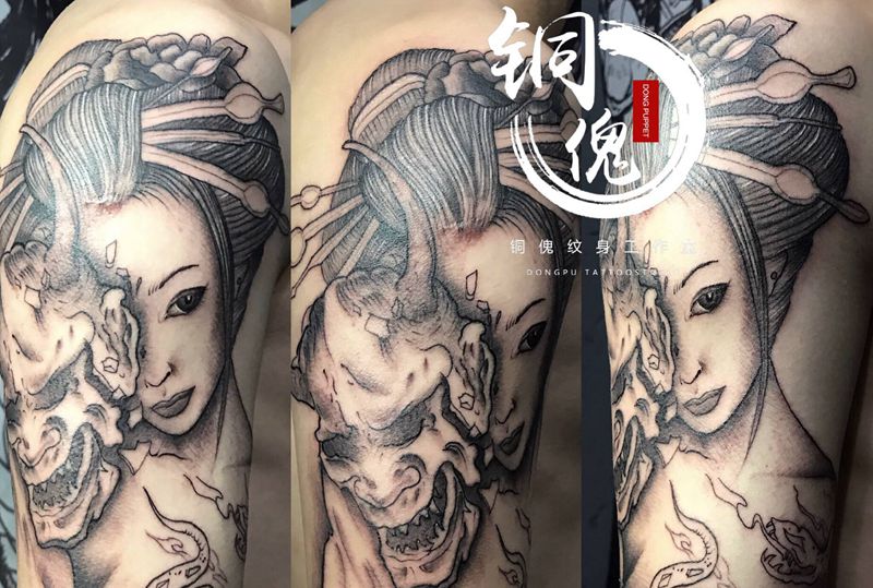 黑灰满背纹身图案