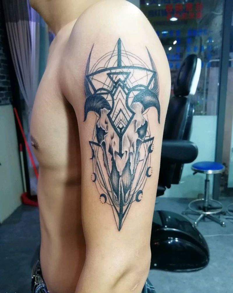 当前位置: 首页 >广东省惠州市纹身店-会龙堂纹艺纹身图案>羊骷髅头纹身图片