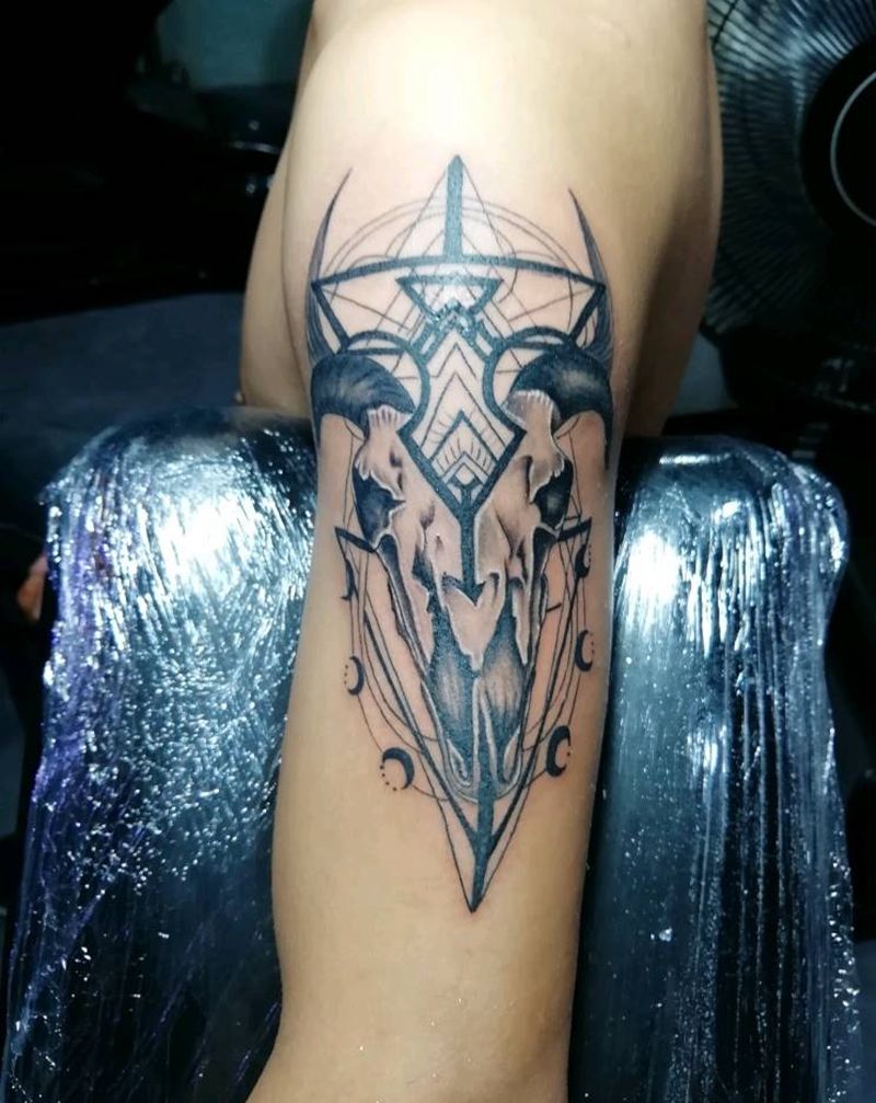 当前位置: 首页 >广东省惠州市纹身店-会龙堂纹艺纹身图案>羊骷髅头纹身图片