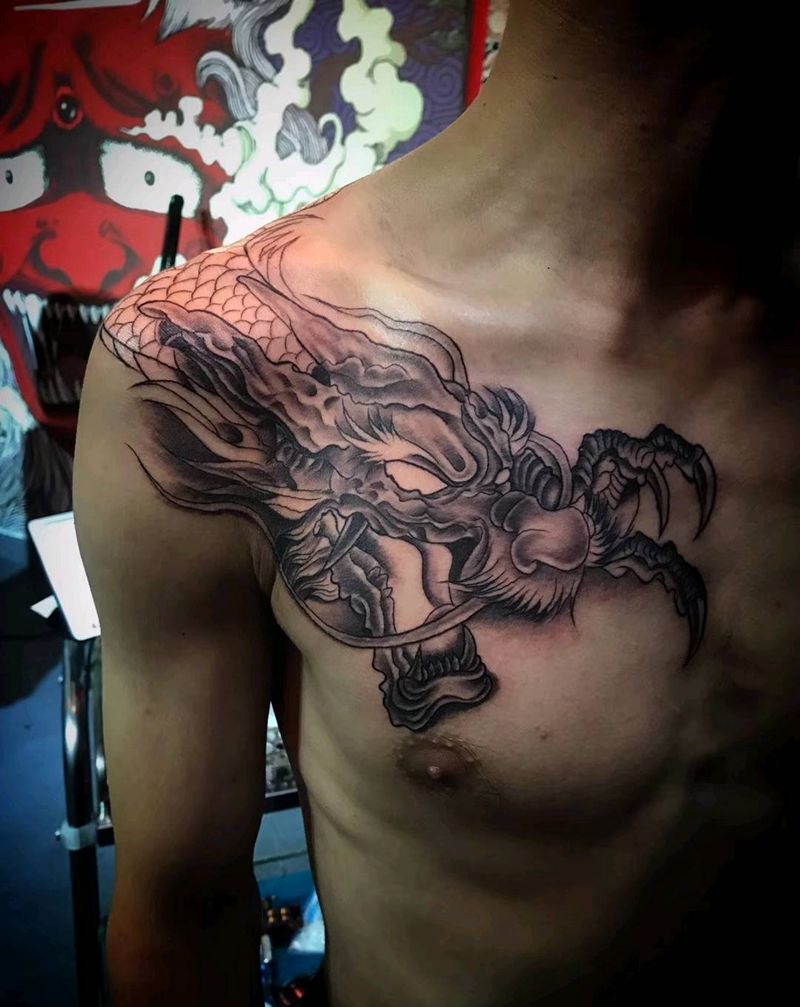 过肩龙纹身图片_背部胸部新传统纹身图案