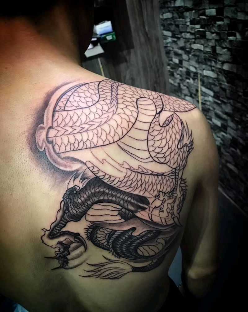 过肩龙纹身图片_背部胸部新传统纹身图案
