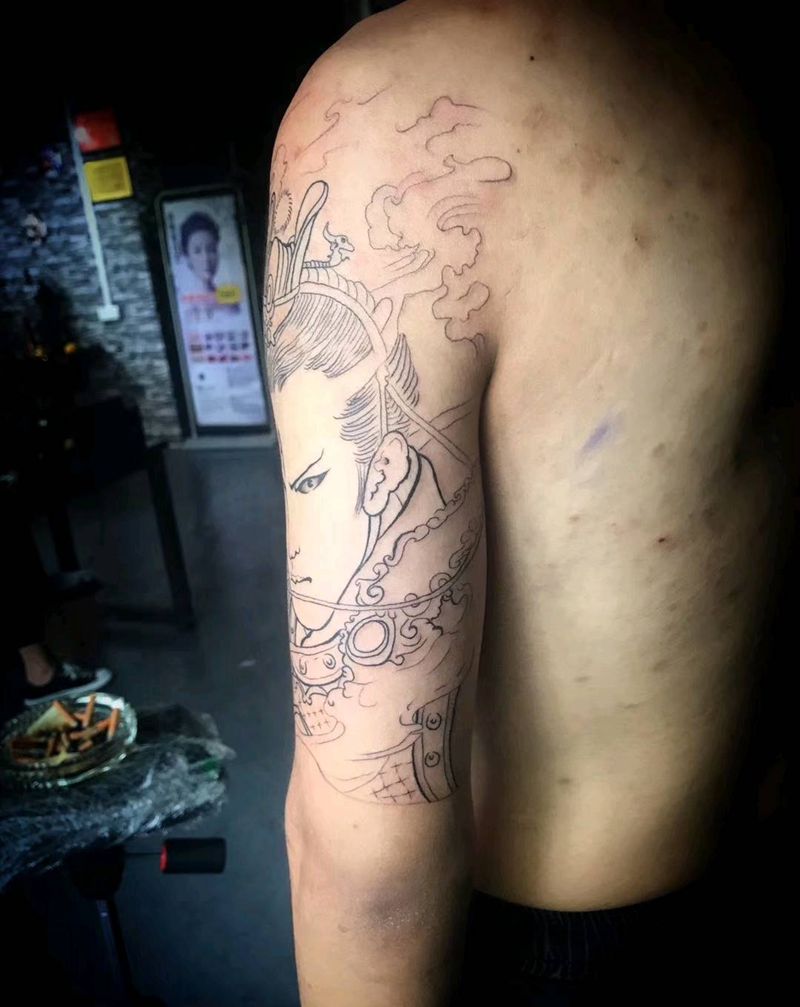 当前位置: 首页 >广东省惠州市纹身店-会龙堂纹艺纹身图案>二郎神线条作品。纹身图片_手臂新传统纹身图案