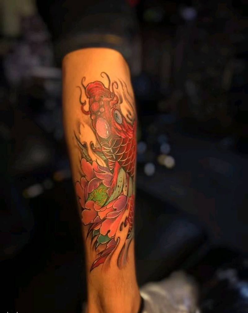 鲤鱼纹身作品纹身图片_脚部新传统纹身图案