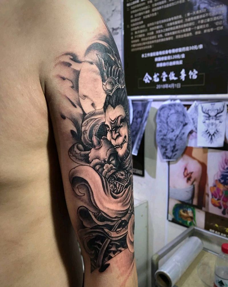 当前位置: 首页 >广东省惠州市纹身店-会龙堂纹艺纹身图案>猴哥纹身图片_手臂新传统纹身图案