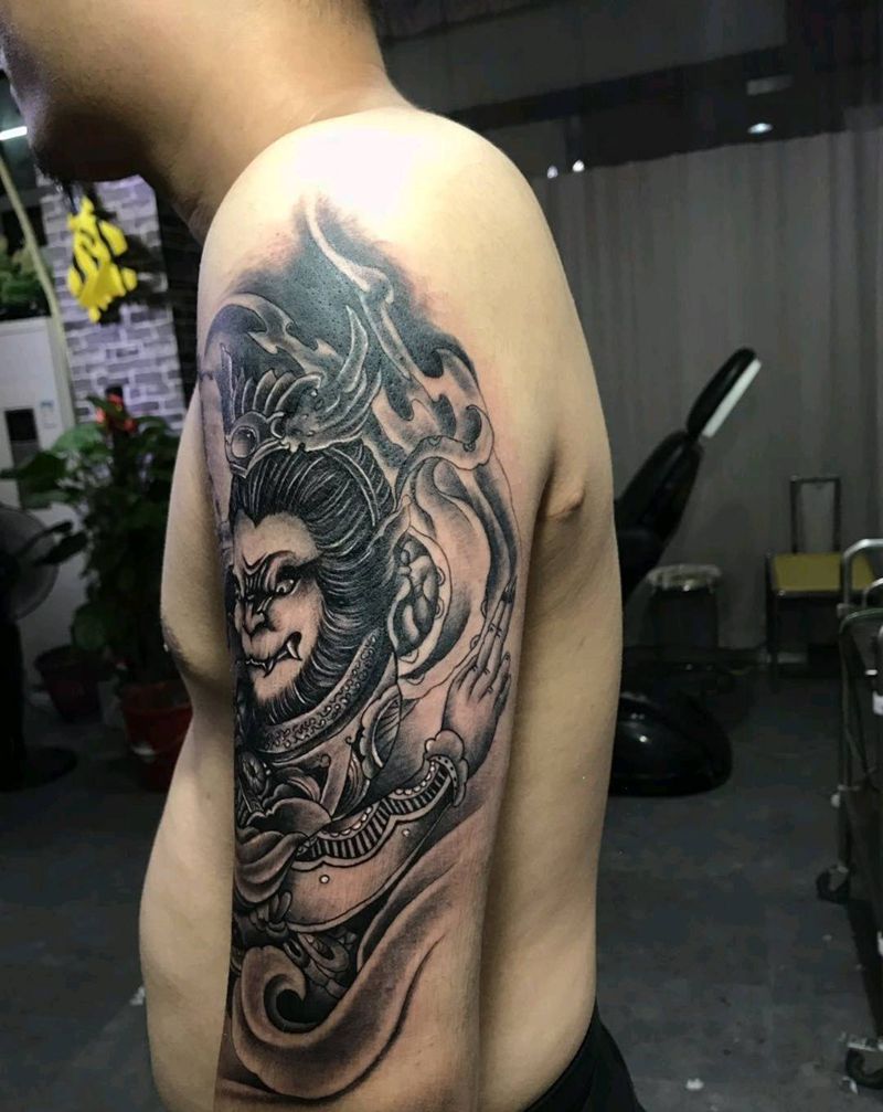 当前位置: 首页 >广东省惠州市纹身店-会龙堂纹艺纹身图案>猴哥纹身图片_手臂新传统纹身图案