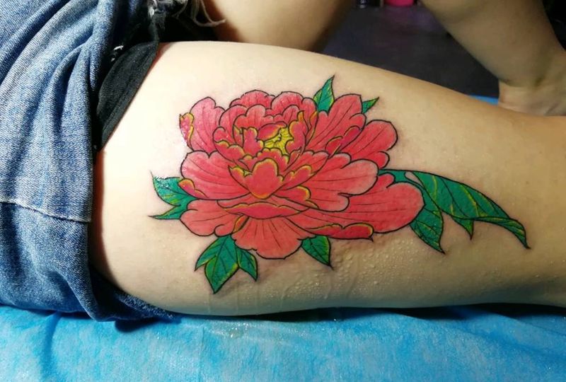 当前位置: 首页 >广东省惠州市纹身店-会龙堂纹艺纹身图案>牡丹纹身图片_腿部新传统纹身图案