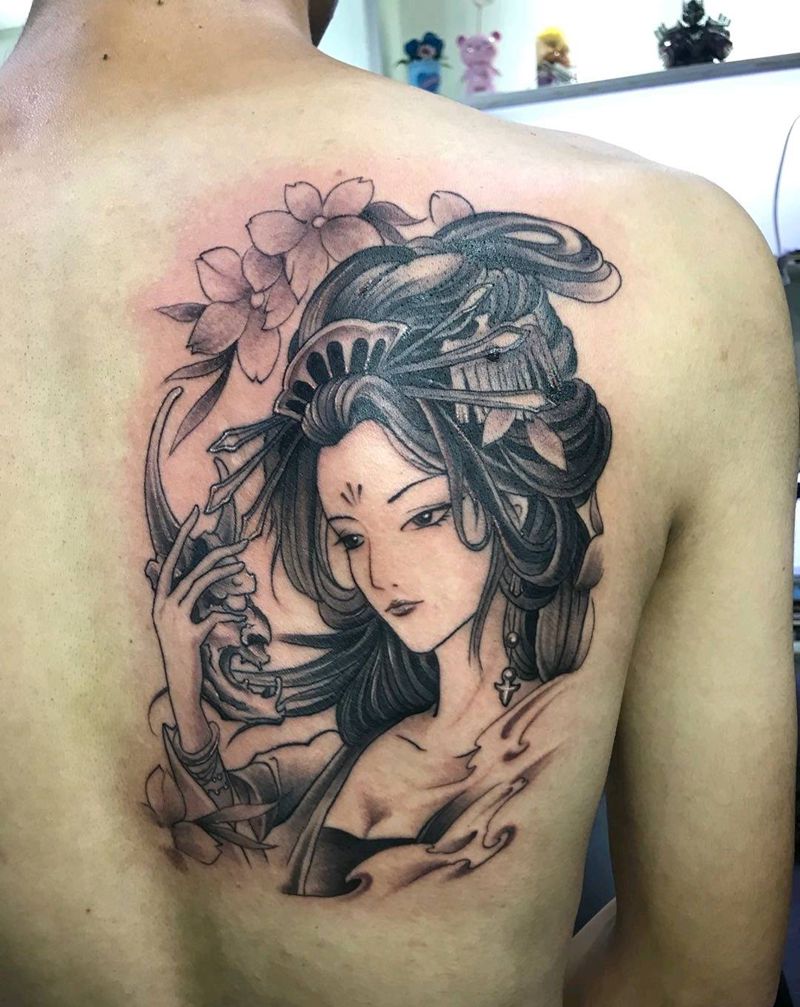 当前位置: 首页 >广东省惠州市纹身店-会龙堂纹艺纹身图案>网红艺妓纹身图片_肩部新传统纹身图案