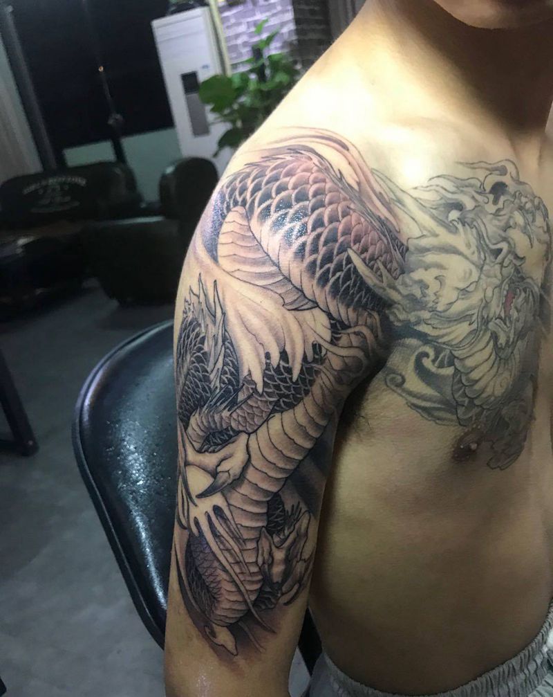 过肩龙纹身图片_手臂胸部新传统纹身图案