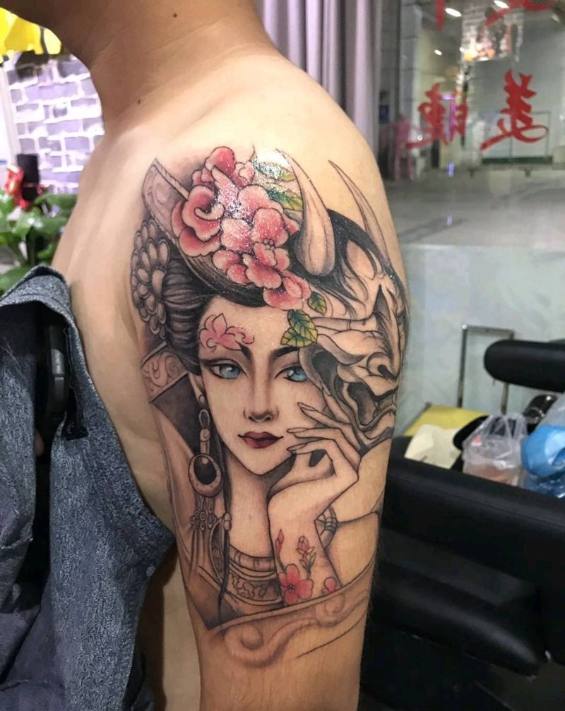 艺妓纹身图片_肩部新传统纹身图案