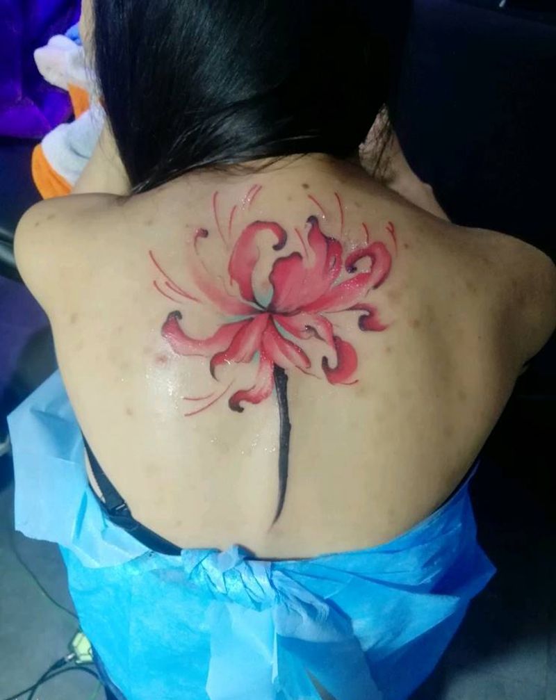 彼岸花纹身图片_背部水墨纹身图案