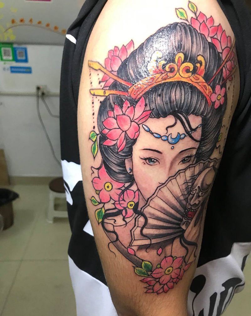 当前位置: 首页 >广东省惠州市纹身店-会龙堂纹艺纹身图案>艺妓纹身图片_手臂新传统纹身图案