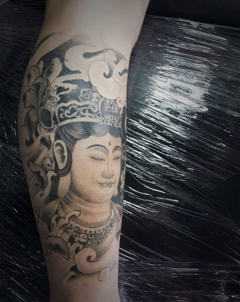 普贤佛包小腿纹身图片_腿部新传统纹身图案