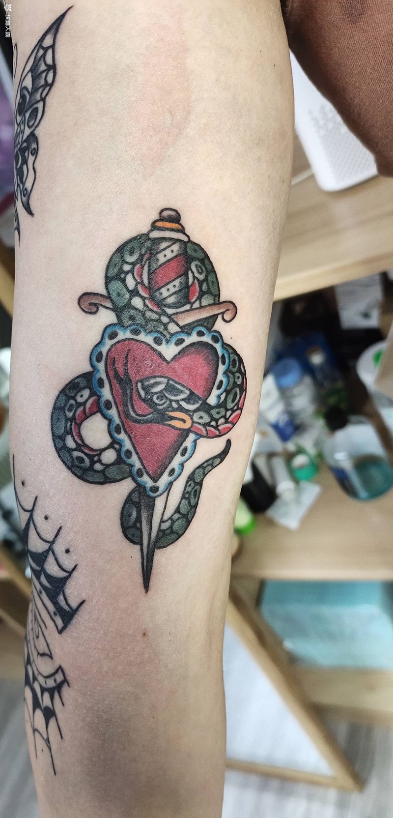 当前位置: 首页 >广东省梅州市纹身店-小八刺青工作室纹身图案>拼接花臂纹身图片_手臂Old School纹身图案