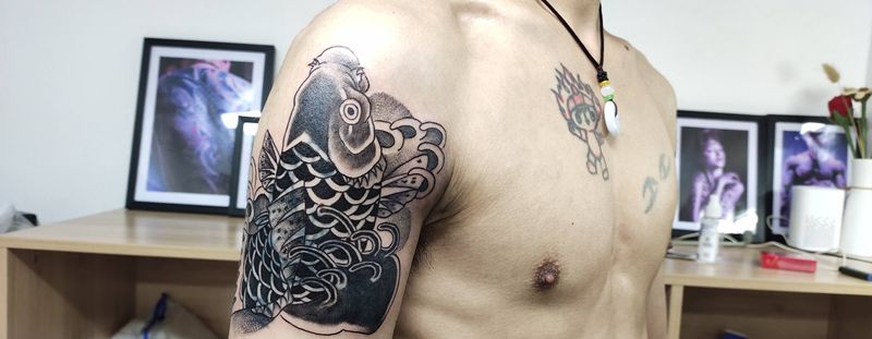 当前位置: 首页 >广东省梅州市纹身店-小八刺青工作室纹身图案>旧纹身遮盖作品纹身图片_手臂鱼纹身图案