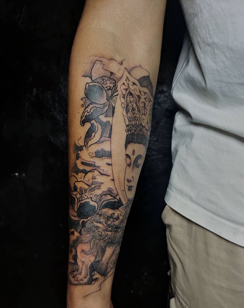 当前位置: 首页 >广东省梅州市纹身店-小八刺青工作室纹身图案>新传统纹身图片_手臂新传统佛纹身图案