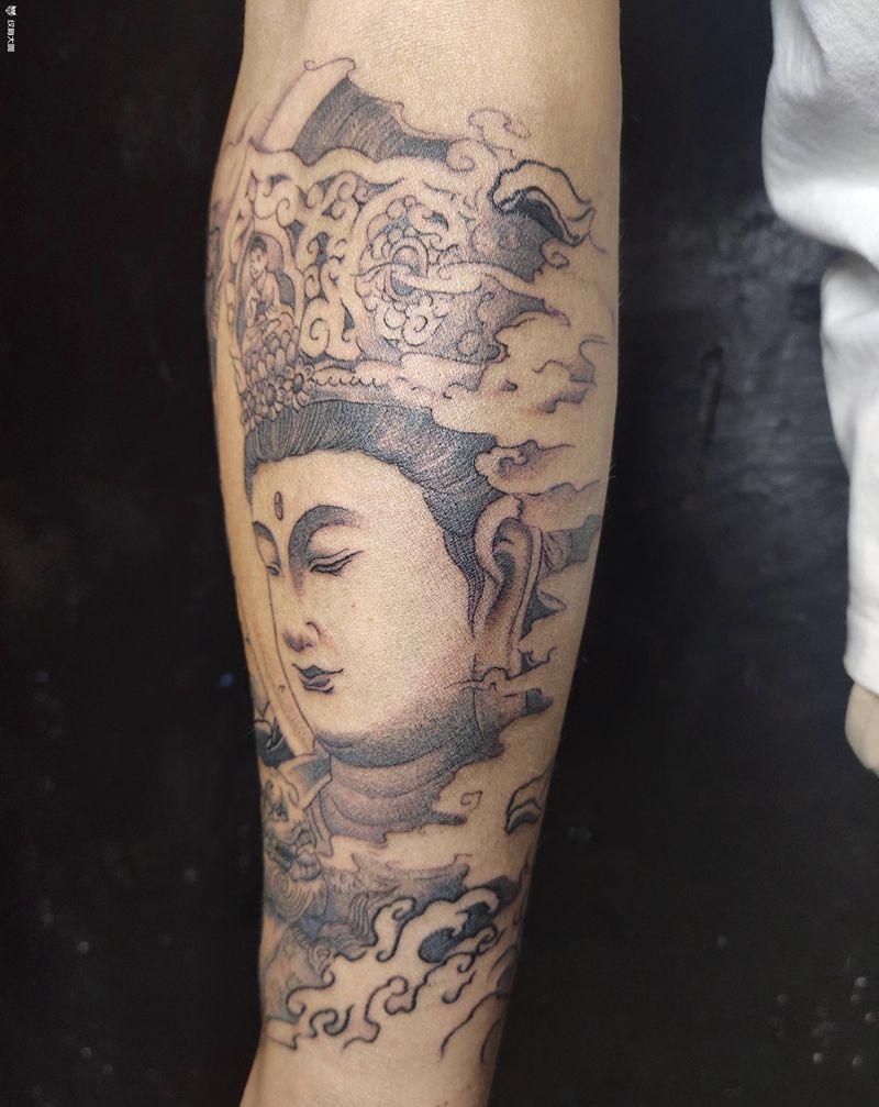 新传统纹身图片_手臂新传统佛纹身图案