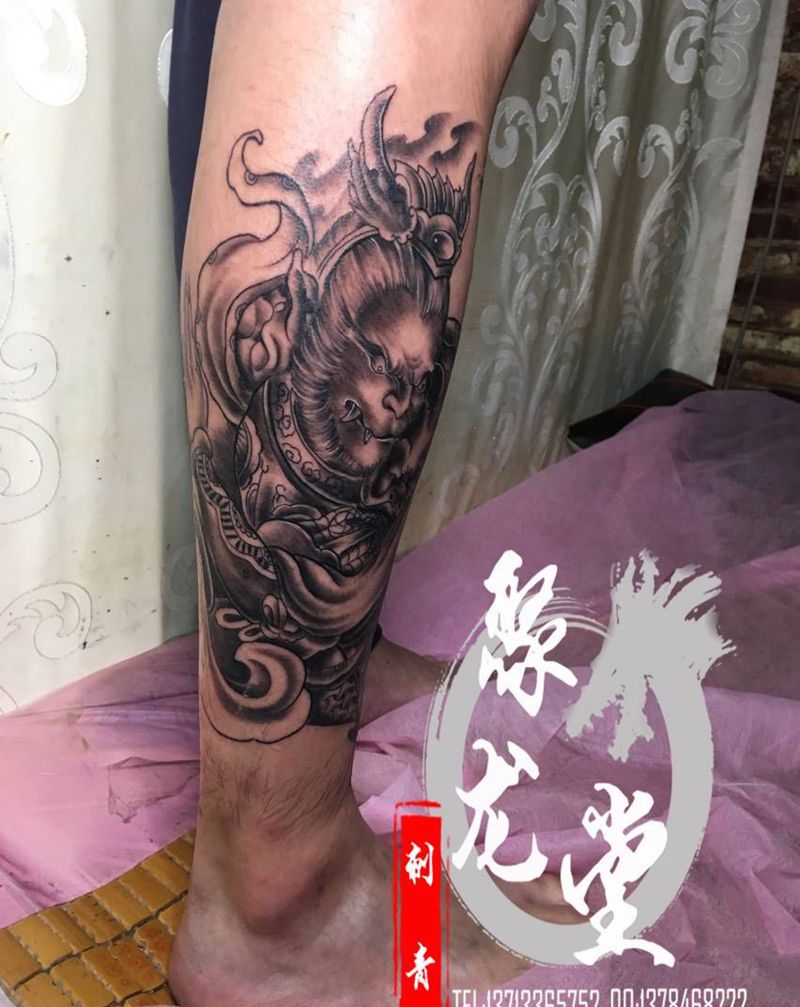 猴哥纹身图片_成品腿部传统人物纹身图案
